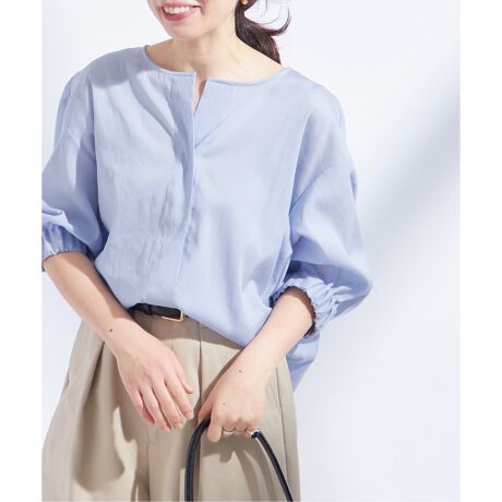 滑らかな生地感で柔らかい印象に仕上げてくれるブラウス。