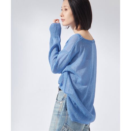 麻のように涼し気に着られ春夏シーズンに活躍するニット。