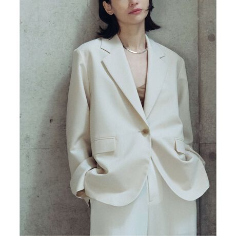 ワンボタンのシングルフロントのシンプルなデザイン。ハリ感があり軽量なので、デイリー使いからオケージョンシーンにも使いやすい汎用性の高い一枚。