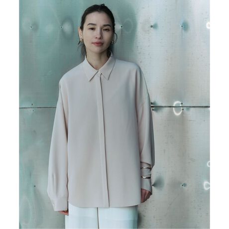 肌馴染みが良く顔回りを明るく見せてくれるベージュカラーで、いつものシャツに比べてより女性らしく纏える一枚です。