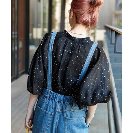 立体的な7分丈袖がポイントで体に張り付かないシルエットの涼しげなブラウスになっています。