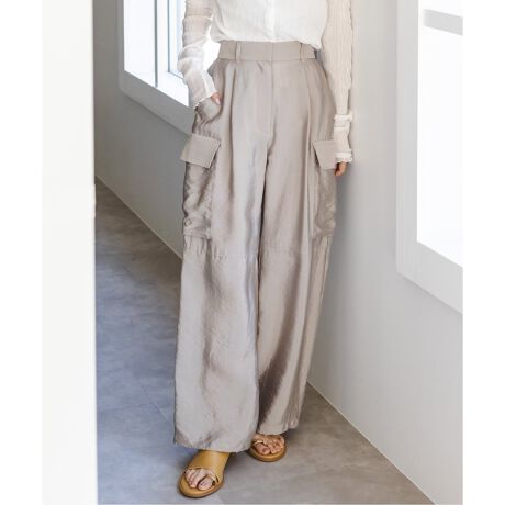 ヴィンテージ加工を施したタフタ素材の落ち感が女性らしく、メンズライクなデザインのアイテムをバランスよく穿きこなすことが可能。