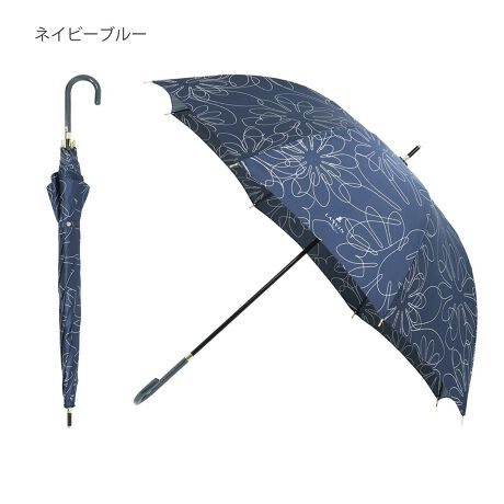 アート風の花柄プリントが全面に描かれた婦人用長傘です。