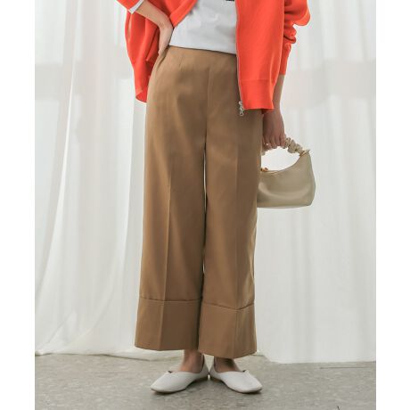 ベーシックな裾がダブルのセミワイドパンツ。こちらは丈が短めになるので、身長150cm台の小柄な方にオススメ!!