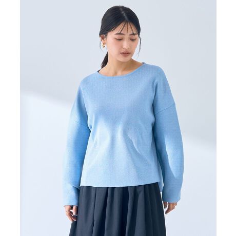 肩を落としたデザインにボリュームを付けたアームラインと前後差ニュアンスを効かせたボックスシルエットでゆとりのある着心地。