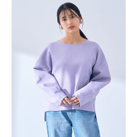 肩を落としたデザインにボリュームを付けたアームラインと前後差ニュアンスを効かせたボックスシルエットでゆとりのある着心地。