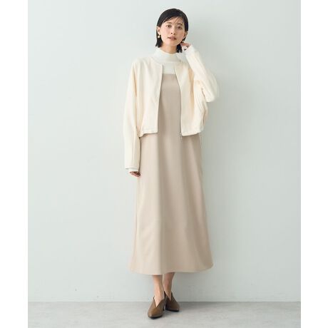 キャミソールワンピースは縦長シルエットのラインが華奢見え効果をプラス。