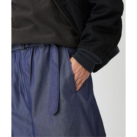 ベルテッドデザインが腰回りにアクセントを作り、裾にはドローコードも付属し、ワイドストレートシルエットながらもスマートな印象に。