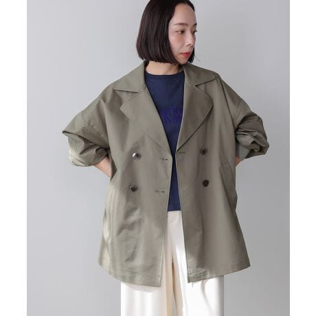 バックスタイルで差がつく!ミリタリートレンチコート。後ろにニット素材がドッキングされたバックシャンデザイン。オーバーサイズシルエットでゆったりお召し頂けます。袖にリブが入ったデザインで、腕をまくって頂くと抜け感も出て◎