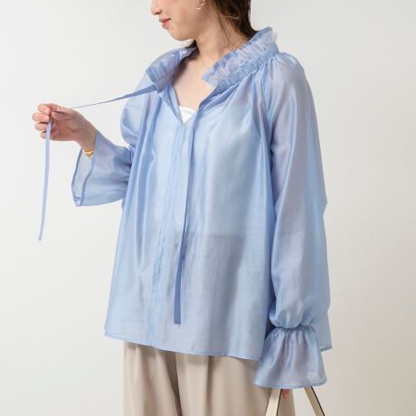 襟チュールフリルシアーブラウス