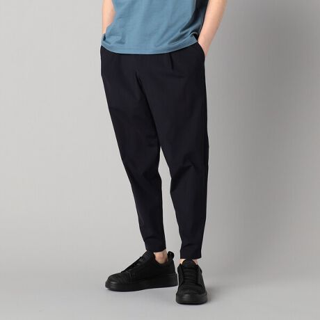 ワンタックで腰回りにゆとりを持たせ、裾に向けて緩やかに細くしたワイドテーパードシルエット。