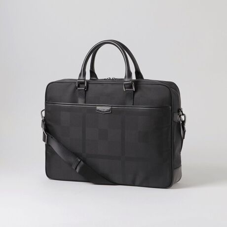 ブランドアイコンのクレストブリッジチェック柄を織りで表現したブリーフバッグ。ビジネスシーンに適応したサイズ感に加えて、内側に小分けが出来るポケットを多数配置しており、機能性・収納力を重視した仕様に仕上げています。