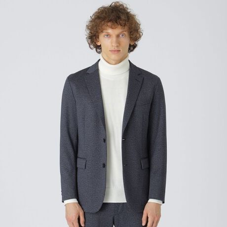 表地にはストレッチ性の高いきれいめダブルジャージー素材にウール調ツイルプリントを施した素材を使用しています。ジャージー素材が持つストレッチ性の高さと、高級感のあるプリントが特徴のビジネスシーンでも着用可能な1着です。