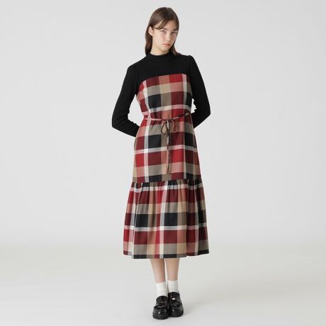 【一部店舗限定】クレストブリッジチェックエアリーツイルテレココンビドレス