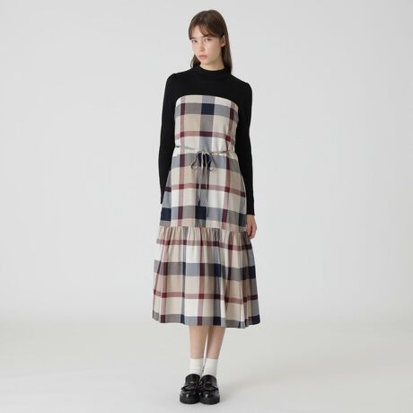 【一部店舗限定】クレストブリッジチェックエアリーツイルテレココンビドレス
