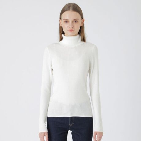 コンパクトなタイトシルエットのベーシックなリブタートルです。