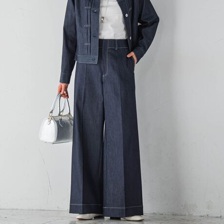 たっぷりワイドシルエットのキレイめデニムライトパンツ。