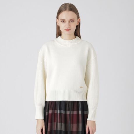 短めの着丈が可愛いスリーブコンシャスなニットプルオーバーです。