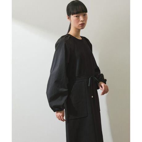 細ゴムを入れてパフっとさせた袖口や、スウェット素材でストンとした大人カジュアルなスカートのシルエットにもこだわった、メリハリのある一着。