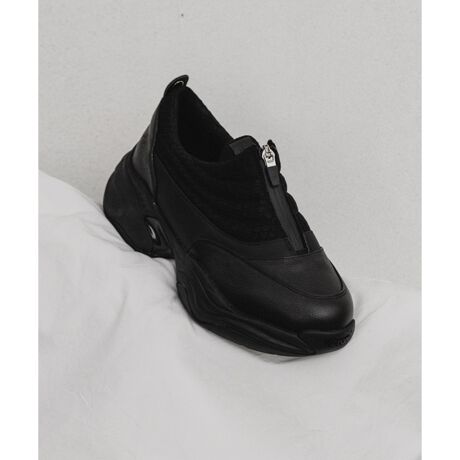 アッパー部分には、独特のツヤと深いグレイン(シボ)が特徴のカウレザーと高い通気性とソフトな履き心地をもたらす、ハニカム構造(六角構造)の3Dメッシュを採用。ファスナーがスマートな着脱を実現します。