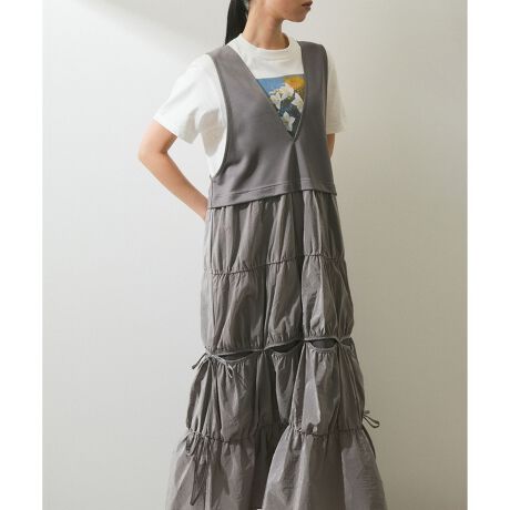 Vネックのすっきり感とスカートのティアードディティールのバランスで、程よい甘さに仕上げたレイヤードを楽しめるアイテム。