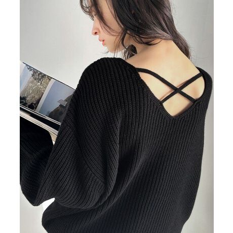 【mily bilet】2wayプレート使いクロスデザイン畦編みニットプルオーバー(長袖)