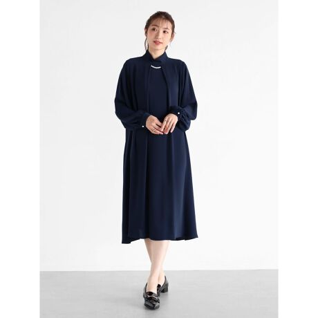 首元とカフスにあしらわれたさり気ないパールがポイントのワンピース。