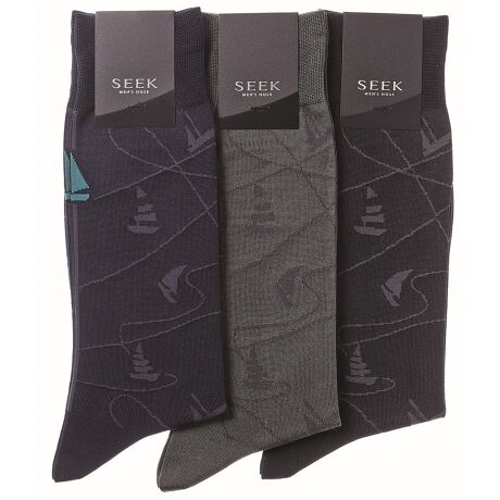 同系色で抑えた総柄+バックセンターの配色ライン+ふくらはぎ下にヨット柄を配した遊び心のあるデザイン。