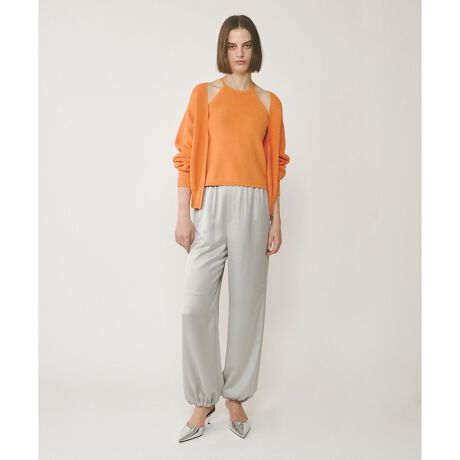 コットンブレンド糸で片畦編みしたホルターネックのキャミソール。肩から腕にかけてすっきり見えるラインに拘り、女性らしい華奢さを感じられるアメスリデザインに仕上げました。やや肉厚で透けを気にせず、また衿ぐりが詰まっている為一枚でヘルシーに着て頂けるのもポイント。お揃いでお作りしたカーディガンとのセットアップもおすすめです。