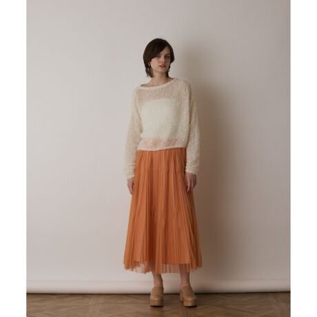 柔らかい透明のフィルムとリボンヤーンのウール混素材でお作りした、華やかなニットトップス。ざっくりと編み上げたリラックスムード溢れる雰囲気が魅力の一枚です。軽い着心地とほのかに透けるニットならではの優しい表情を活かした、シンプルなデザイン。キャミソールなどでヘルシーに合わせたり、シアートップスやハイネックなどを絡めたレイヤードスタイルも今季らしくておすすめです。