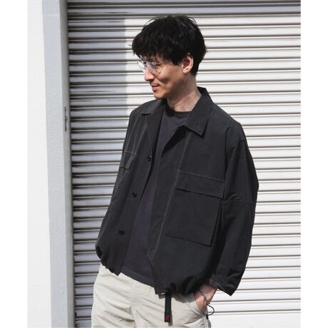 素材には、ポリエステルミニリップストップを使用。 うっすら透け感があるほど薄手の素材で、シャツ感覚で着用いただけるアイテムとなっています。