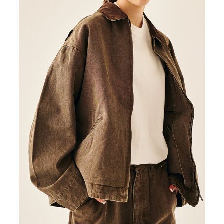 しっかりとしたダック地にフェード感のある染め、洗いをかけ着込んだような色落ち、アタリ感が出るように仕上げています。無骨ながら柔らかな風合いに仕上げ、着心地の良い着用感にしています。