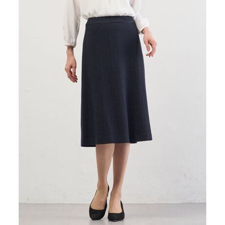 裾に向かって程良く広がるシルエットが美しいAラインスカート。ウエストヨーク下にパイピングテープを挟み込み、トップスをインした時のアクセントにしています。ひざ下が隠れる上品な丈感で座った時もきれいな見え感のため、オケージョンや特別な日にもおすすめ。左脇がファスナー開きになっているので着脱も楽です。同素材のジャケットとセットアップで着用することで、より一層のフォーマル感と華やかさを演出できます。単品でもお使いいただけるため、合わせるアイテム次第でオフィスからデイリーまで幅広く活躍する汎用性の高いアイテム。総裏ありです。