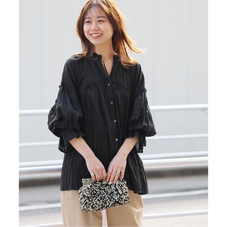 コットンボイルクリンクルフリルギャザーブラウス