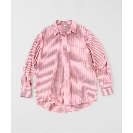 レーヨン、ポリエステルのとろみのある落ち感のストライプ生地がポイントのシャツ。
