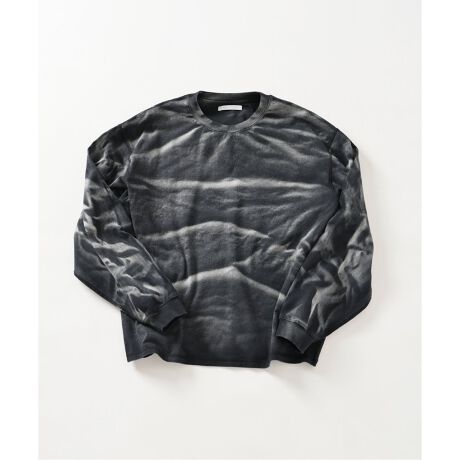 手作業によるブリーチ加工で、一枚一枚表情が異なる特別なロンT。パウダーブリーチが生み出す、ランダムな模様が、コーディネートに奥行きを与えます。