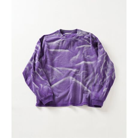 手作業によるブリーチ加工で、一枚一枚表情が異なる特別なロンT。パウダーブリーチが生み出す、ランダムな模様が、コーディネートに奥行きを与えます。