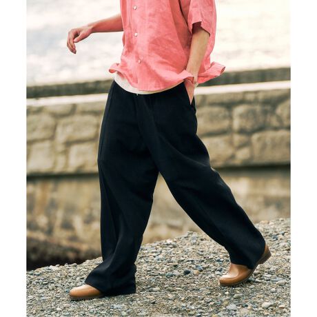 麻のようなナチュラル感のあるReflax生地を使用したイージーパンツ。