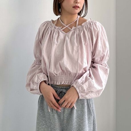 首周りはゴムが入っているのでお好きな首元で着ていただけます。