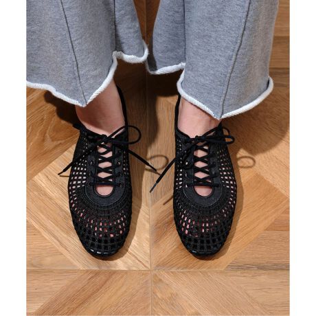 刺繍でレースの様に仕立てたアッパーが目を惹くレースアップシューズ。