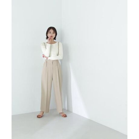 華奢なナローストラップがポイントのストレートワイドシルエットパンツ。ストラップはウエスト裏の内釦で取り外しが可能なため、ストラップを外しても使える2wayデザインです。あえてストラップにメタルバックルを付けてスタイリングのアクセントに。メタルバックルで肩紐の長さ調節ができます。ウエストのベルト切り替えとセンタープレスが入っているので、スタイルアップ効果も期待できます。<素材>シワになりにくい合繊素材を使用。裏地がなくても体のラインを拾いすぎず、安心感のある着心地です。<詳細>仕様・前ファスナー裏地・なし透け感・なし / 光沢・なし / 伸縮性・ややあり 生地の厚さ・普通※モデルの着用画像の場合、光の当たり具合により、実際の色味と異なって見えることがございます。色味は、商品単体の画像をご参照ください。