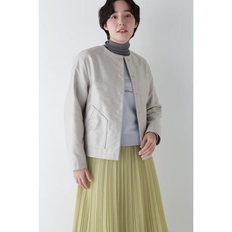 程よい艶感と軽い着心地が魅力のノーカラーブルゾン