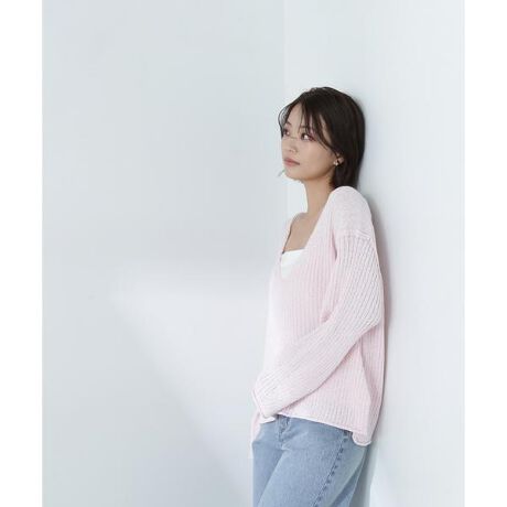 麻タッチのドライな糸を使用したボクシーシルエットでリラクシーな着心地のニット。ゆったりとしたサイズの袖周りやドロップショルダーで体のラインを拾わず、リラクシーに着られるデザインです。深めのVネックなので、襟を後ろに抜いたり、インナーキャミソールを着てヘルシーな肌見せをするのも今年らしくておすすめです。<素材>麻タッチのドライな糸を使用しザクっと編んだニットです。<詳細>仕様・開閉なし裏地・なし透け感・なし / 光沢・なし / 伸縮性・あり 生地の厚さ・普通※モデルの着用画像の場合、光の当たり具合により、実際の色味と異なって見えることがございます。色味は、商品単体の画像をご参照ください。