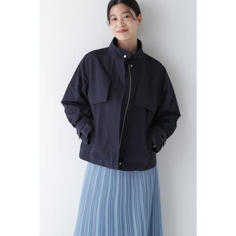 スタンドカラーとフラシのヨークがポイントになるすっきりシルエットのブルゾンです。袖口のタブの留め具合で袖のシルエット変化も楽しめます。