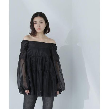 ハリ感のあるシアーな素材を使用した春らしいチュニックは、ふんわりと広がるボリュームが一枚で着映えるデザイン。首元は抜け感があるので、トレンドのボウリボンやチョーカーとも相性が良く、アクセサリーをプラスワンするのもオススメです。裾は幅広に折り返したディテールが高見えに。デニムなどのカジュアルな素材を合わせたスタイリングは勿論、キレイめなボトムスとも相性良く着ていただけます。<素材>ハリ感のあるシアーなオーガンジー素材を使用。インナーが透けにくいよう胸元と袖山は表地を2枚重ねています。<詳細>仕様・開閉なし裏地・なし透け感・あり / 光沢・なし / 伸縮性・なし 生地の厚さ・普通※モデルの着用画像の場合、光の当たり具合により、実際の色味と異なって見えることがございます。色味は、商品単体の画像をご参照ください。
