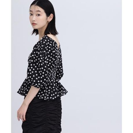 <BLANC(ブラン)>今のほしいをここに。自分らしく、自由なスタイリングを楽しみたい。洗練されたCLASS感と“今”を感じるモードフェミニンなアイテムを提案します。シアー素材に花柄ジャガードを施した一枚で着映えるブラウス。コンパクトサイズで、ウエストから裾に向かってふわりと広がるペプラムシルエットです。襟は前後Vネックで甘くなりすぎないよう、抜け感をプラス。縦長ラインを意識したスカートを合わせたり、デニムスタイルもオススメです。<素材>花柄のジャガードを施したシアーオーガンジーを使用、適度なハリがある素材です。<詳細>仕様・開閉なし裏地・あり透け感・なし / 光沢・なし / 伸縮性・なし 生地の厚さ・薄手※モデルの着用画像の場合、光の当たり具合により、実際の色味と異なって見えることがございます。色味は、商品単体の画像をご参照ください。