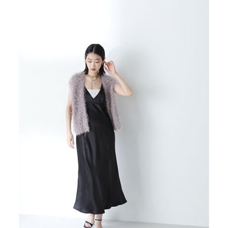 生地をバイヤス取りする事で、裾にキレイなドレープ感が出るキャミワンピース。ウエスト位置を高く見せる切り替えを入れたり、肩紐のデザインが可愛らしいポイント。プレーンなデザインだからこそ素材感とシルエットのキレイさが際立ち、高見えを叶えてくれます。<素材>肉厚でしなやかな落ち感のあるサテン素材。強すぎない光沢感でニュアンスのある発色が素敵な素材です。<詳細>仕様・後ろファスナー裏地・あり透け感・なし / 光沢・あり / 伸縮性・なし 生地の厚さ・普通 ※モデルの着用画像の場合、光の当たり具合により、実際の色味と異なって見えることがございます。色味は、商品単体の画像をご参照ください。