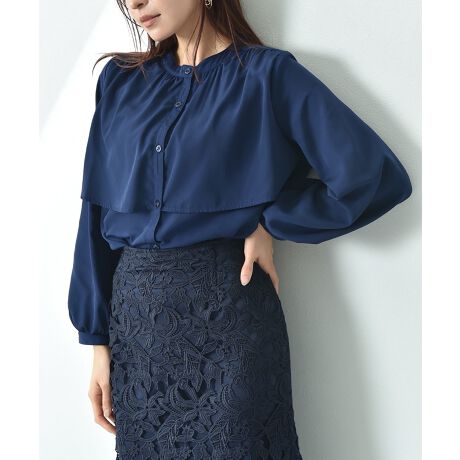 胸元にケープ風ヨークをあしらい、華やかな印象に演出してくれるお勧めなブラウス。コンパクトなバンドカラーがすっきりとした印象に見せてくれ、程よくゆるさのあるサイズ感で女性らしさを引き立ててくれます。ボトムスにインし甘さを抑えた大人っぽい着こなしも◎1ランクアップした大人のスタイルを完成させてくれる優秀なアイテムです。