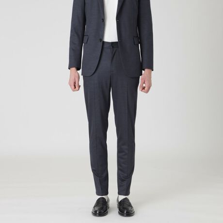 表地には日本最大の毛織物産地として知られる尾州産地で編み上げたダブルフェイス素材を使用しています。ウールが持つ高級感とポリエステルが持つシャープさを生かしつつ編み上げた後に、特殊な光沢加工を施しています。ストレッチ性にも優れ、上品な光沢とキメの細かさが、ビジネスシーンでも難なく着こなすことができる高級感のある1着です。また洗濯機での洗濯が可能なイージーケアアイテムです。
