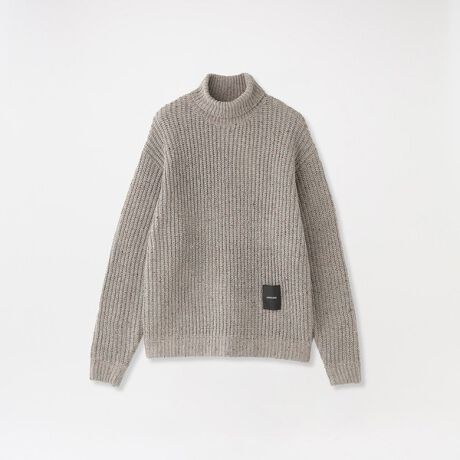 多色のカラーネップが特徴のタートルネックニット